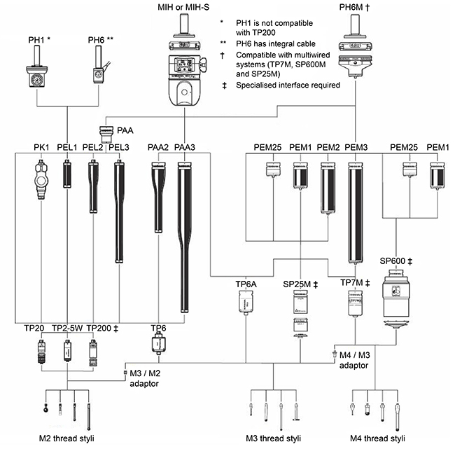 Головка MIH оснащена автоматическим стыковочным соединением для быстрой, повторяемой смены датчика. Это обеспечивает совместимость с большинством датчиков Renishaw, за исключением многоконтактных (например, TP7M).
