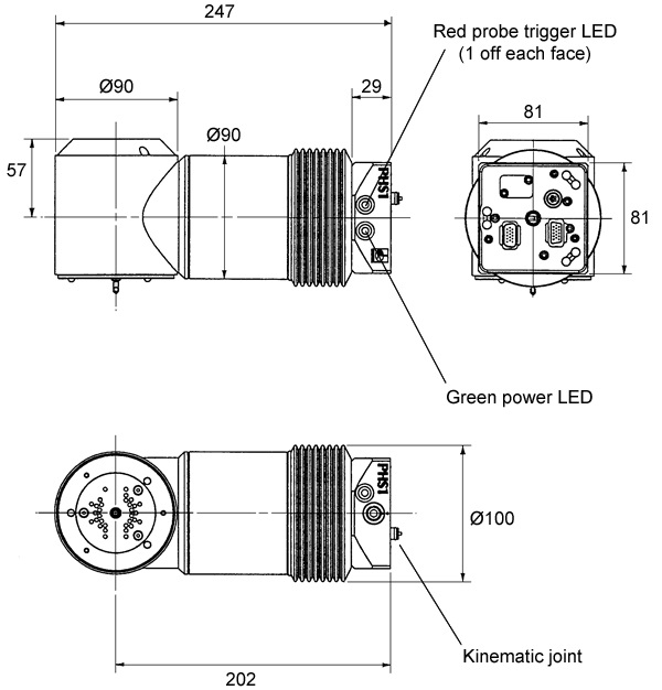 Кинематический патрон (KM1 или KM2) обеспечивает быструю установку головки на измерительной машине, а также быструю замену на систему PH10 PLUS (с помощью переходника PHA1 или PHA2).